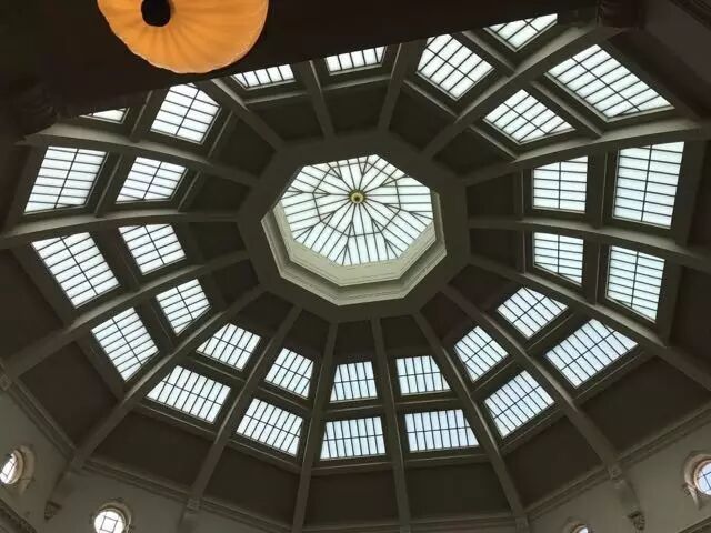 这种透明圆顶设计有个很大的优点,就是采光非常好。乘电梯上6楼,可以俯瞰大厅。视觉效果是不是很棒?