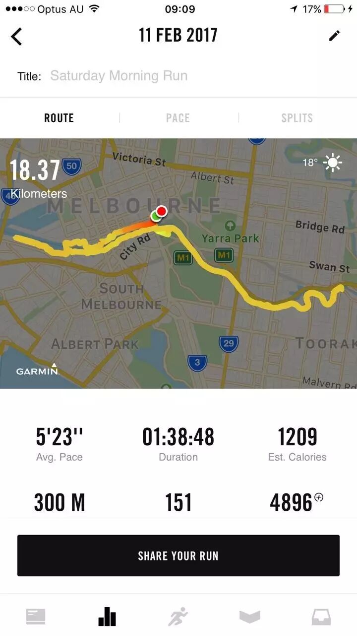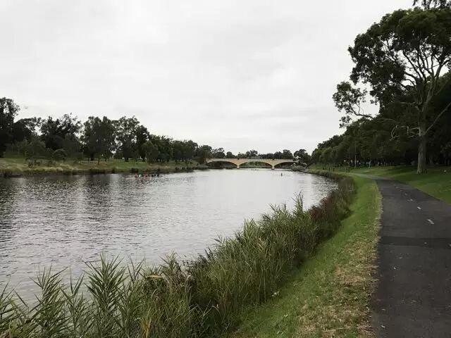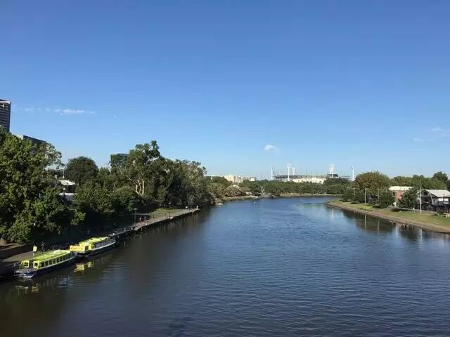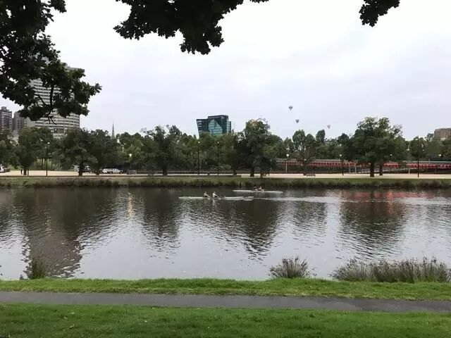 住的酒店在市中心,到哪里都方便,早上先去Yarra河边跑了18公里。这条跑步路线很赞。河里早上有很多人在练习皮划艇,有单人的,也有几人组的;他们搅起的波浪映着晨辉,波光粼粼。河边往往还有教练骑着自行车用喇叭指点。清晨天气好时河畔有人在放热气球。澳洲的空气里时常有一股泰国冬阴功汤的味道,不知道来自何处,很好闻。河南岸是皇家植物园和很多餐馆,晚上的时候热闹非凡。