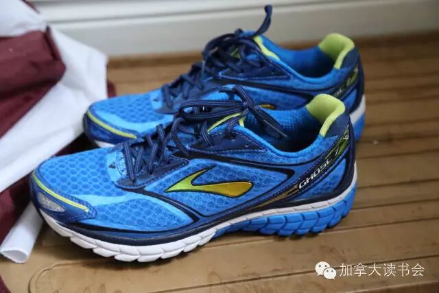 穿过去的鞋不巧湿了,因为气温低,穿着湿鞋湿袜在湖边走脚像在冰窟里走,实在忍不住,卖了个肾,然后到Running Room那个跑步用品专卖店买了双跑鞋,Brooks的Ghost 7。